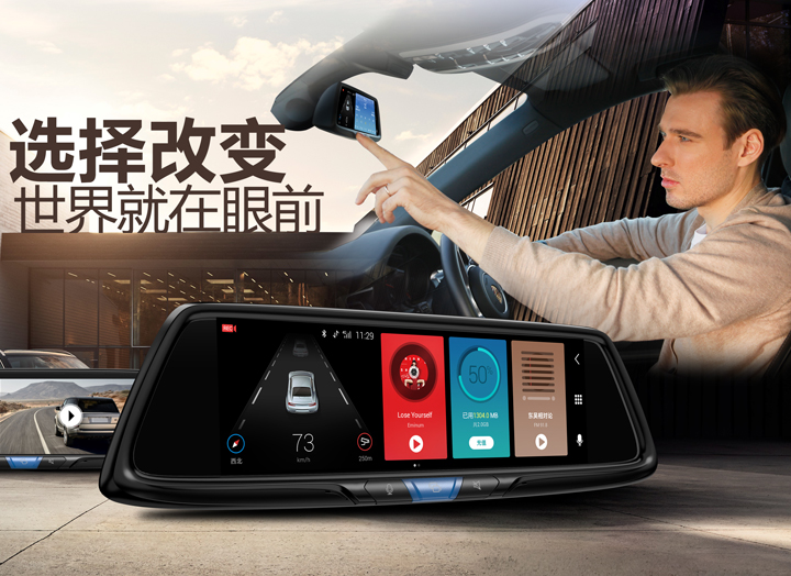 提到榮威RX5,最值得一提的還有,同樣搭載阿里巴巴智能操作系統YunOS的JADO捷渡中國智能后視鏡Vseries遠界。